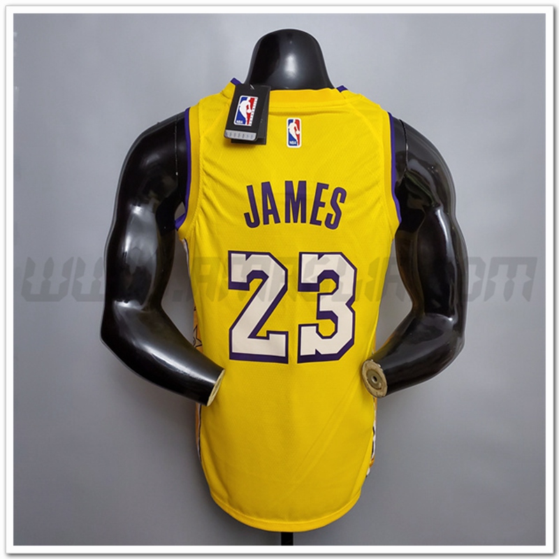 • Maglia Los Angeles Lakers (James #23) Giallo V-collerette Citta
