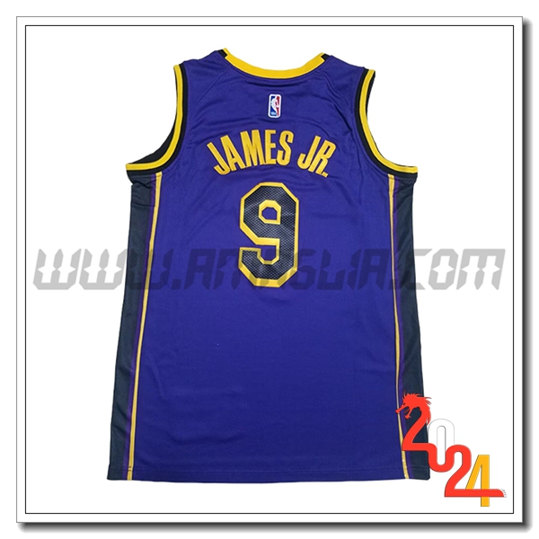 Nuova Maglia Los Angeles Lakers (JAMES JR. #9) 2024/2025 viola/Giallo/Nero -02. sito affidabile per vendere tute calcio poco prezzo