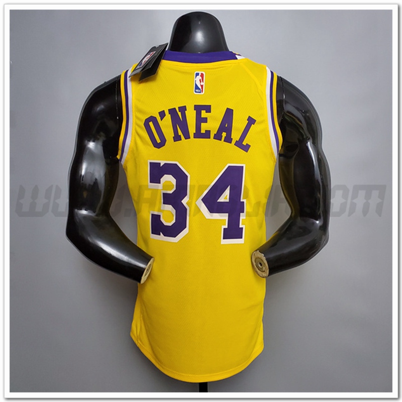 Copie Perfette Maglie Los Angeles Lakers (O'Neal #34) Giallo Encolure Ronde Commemorative Edition. siti affidabili tute Basket a poco prezzo