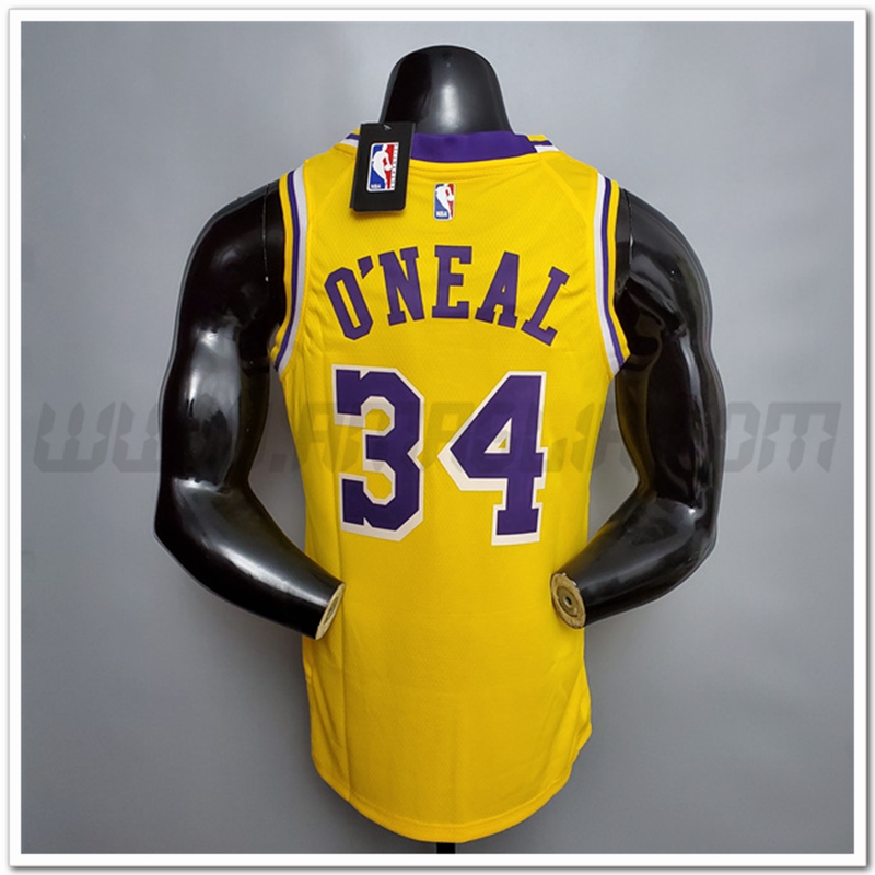 Copie Perfette Maglie Los Angeles Lakers (O'Neal #34) Giallo Encolure Ronde. siti affidabili tuta allenamento Basket squadre a poco prezzo