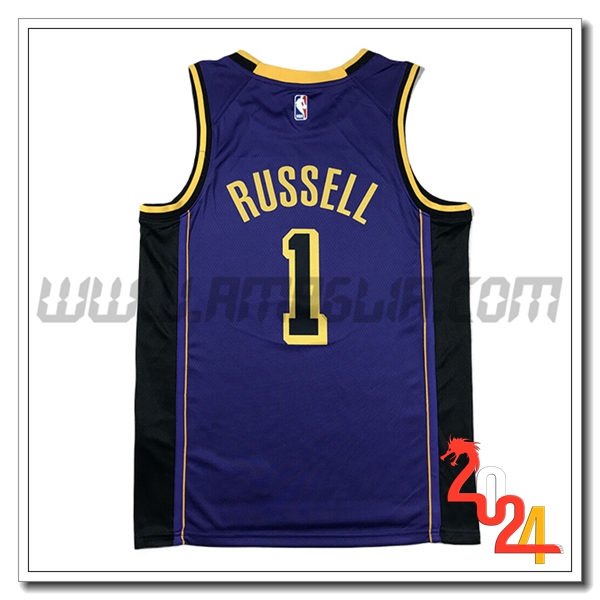 Nuovo Maglia Los Angeles Lakers (RUSSELL #1) 2024/2025 viola/Nero/Giallo -02. sito affidabile per vendere tuta allenamento calcio squadre a poco prezzo
