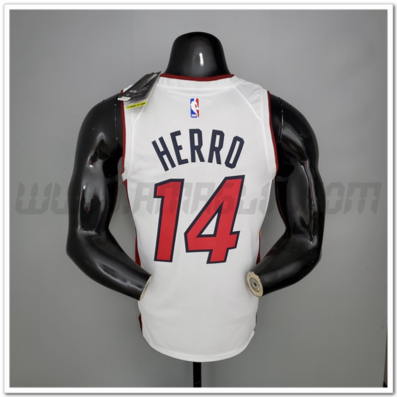 Copie Perfette Maglie Miami Heat (Herro #14) Bianco. siti affidabili tute di Basket a basso prezzo