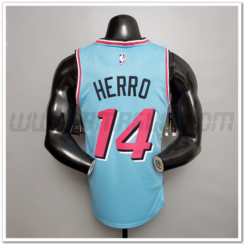 Copie Perfette Maglie Miami Heat (Herro #14) Blu Encolure Ronde. siti affidabili tute Basket a poco prezzo
