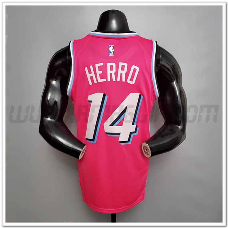 Copie Perfette Maglie Miami Heat (Herro #14) Rose Encolure Ronde. siti affidabili tute di Basket a basso prezzo