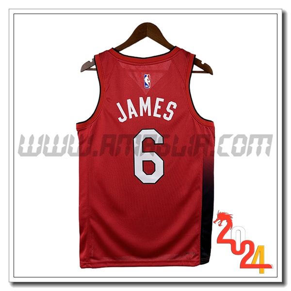 Nuovo Maglia Miami Heat (JAMES #6) 2024/2025 Rosso/Nero. sito affidabile per l'acquisto tute calcio a poco prezzo