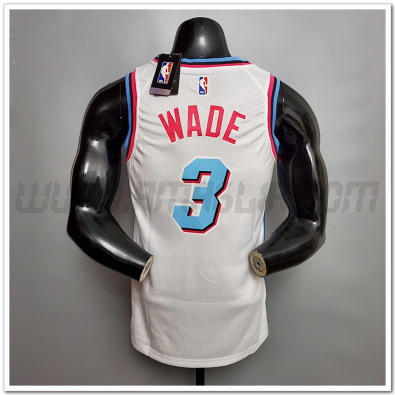 Maglia Miami Heat (Wade #3) Bianco V-collerette