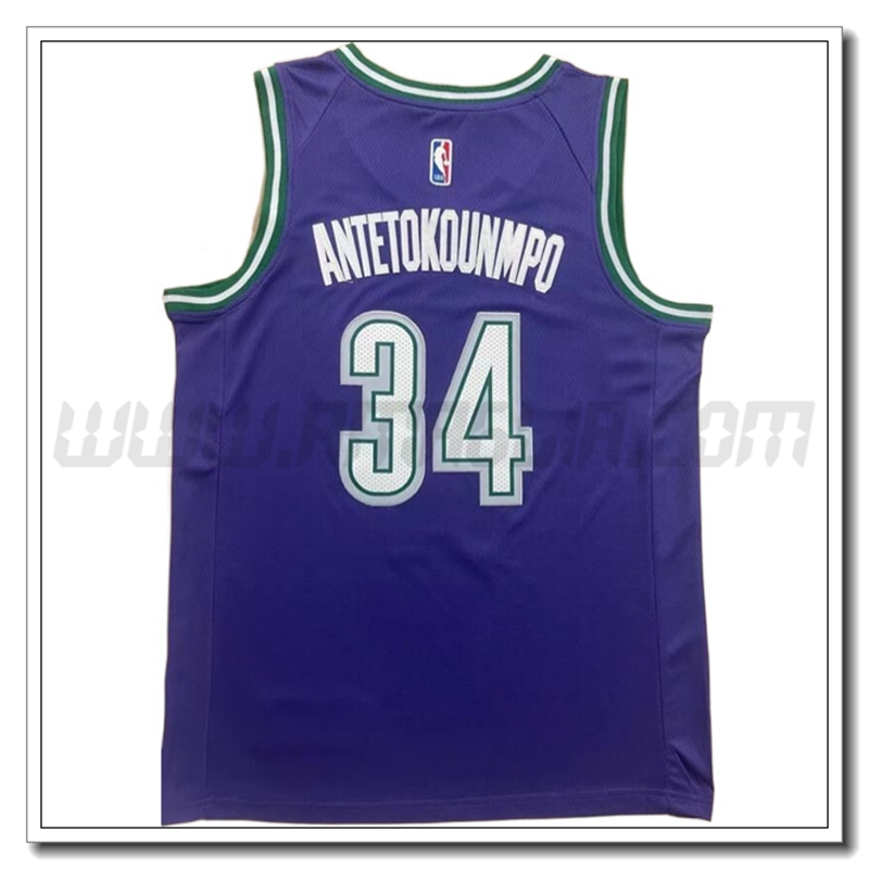 Copie Perfette Maglia Milwaukee Bucks (ANTETOKOUNMPO #34) 2022/23 Viola. siti affidabili tuta allenamento calcio squadre a poco prezzo
