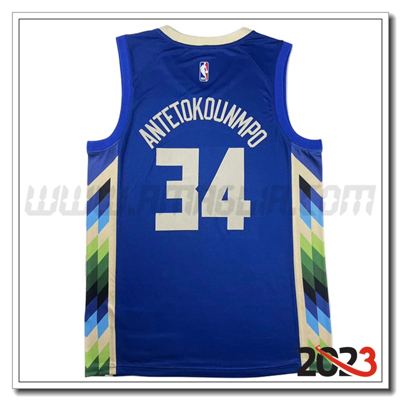 Nuovo Maglia Milwaukee Bucks (ANTETOKOUNMPO #34) 2023/2024 Blu. sito affidabile per vendere tuta allenamento calcio squadre a poco prezzo
