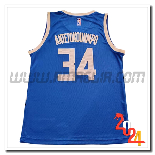 Nuova Maglia Milwaukee Bucks (ANTETOKOUNMPO #34) 2024/2025 Blu/Beige. sito web affidabile per ordinare tute di calcio a basso prezzo
