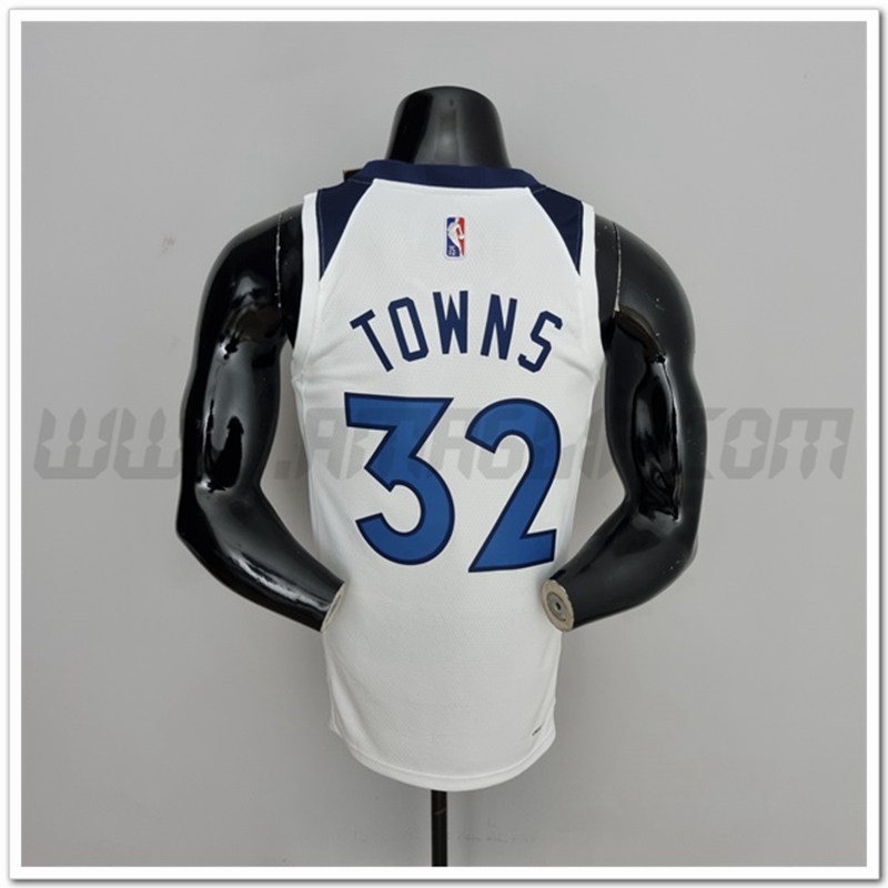 Copie Perfette Maglie Minnesota Timberwolves (Towns #32) Bianco Royal 75°anniversario. siti affidabili tuta allenamento Basket squadre a poco prezzo