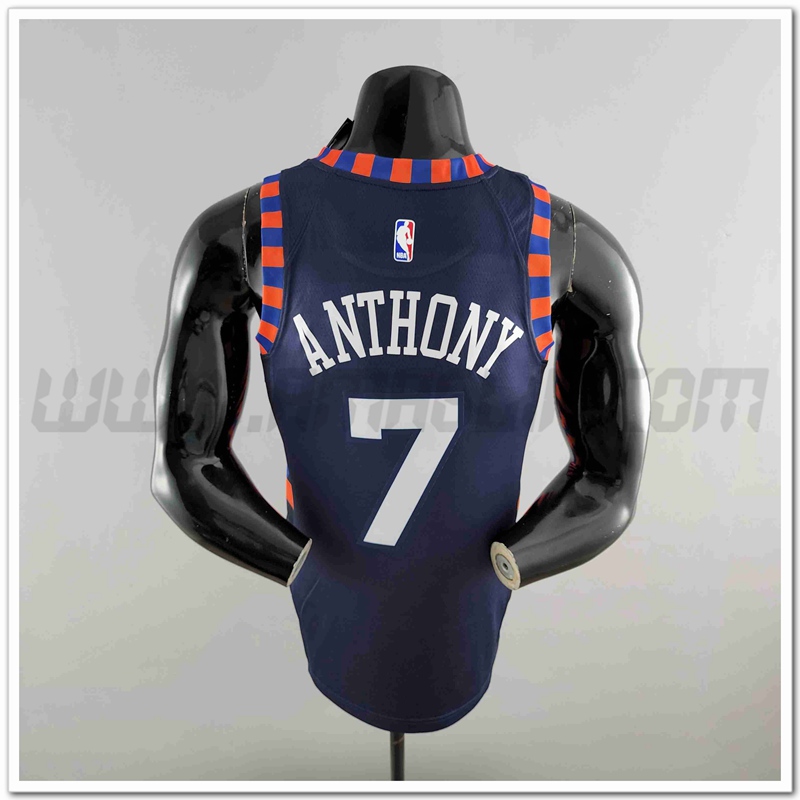 Copie Perfette Maglia New York Knicks (ANTHONY #7) Blu scuro Striped. siti affidabili tuta allenamento basket squadre a poco prezzo
