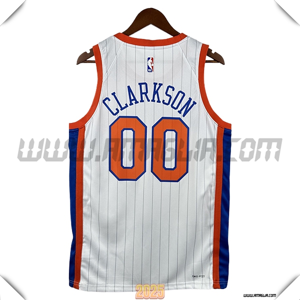 Nuovo Maglia New York Knicks (CLARKSON #00) 2025/2026 Bianco/Arancia/Blu. sito affidabile per vendere tuta allenamento calcio squadre a poco prezzo