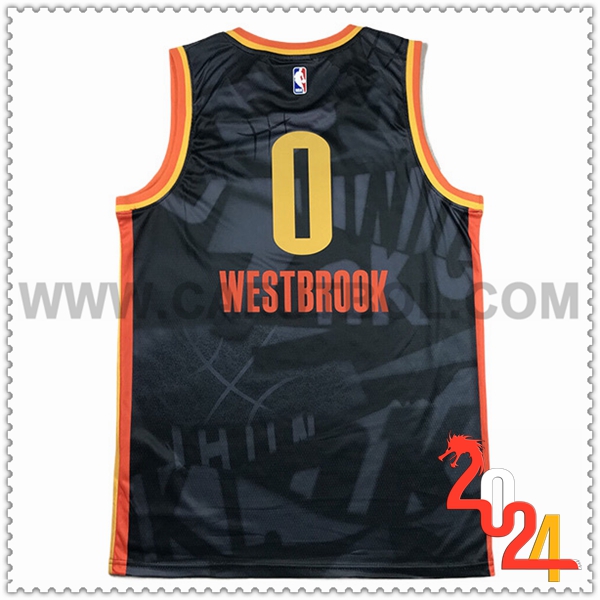 Nuova Maglia Oklahoma City Thunder (WESTBROOK #0) 2024/2025 Nero/Rosso/Giallo. sito affidabile per vendere tute calcio poco prezzo