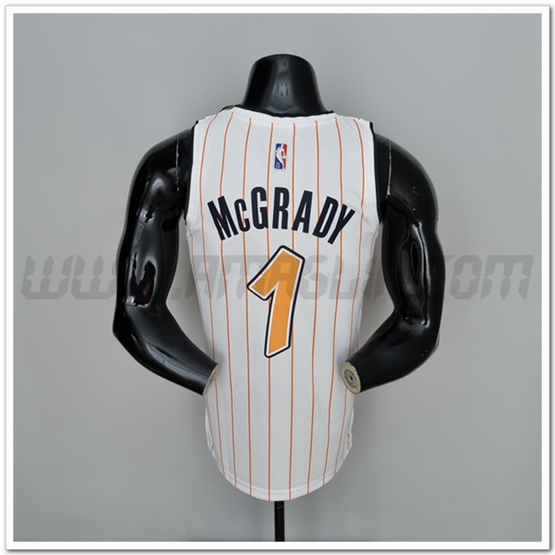 Copie Perfette Maglie Orlando Magic (McGrady #1) Bianco/Orange 75°anniversario. siti affidabili tute di Basket a basso prezzo