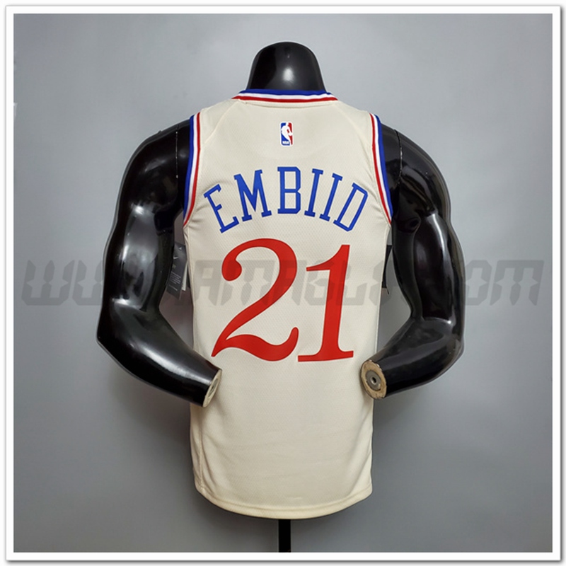 Buono Sconto Maglie Philadelphia 76ers (Embiid #21) 2020 Beige City Limitata. siti affidabili tute squadre Basket a poco prezzo