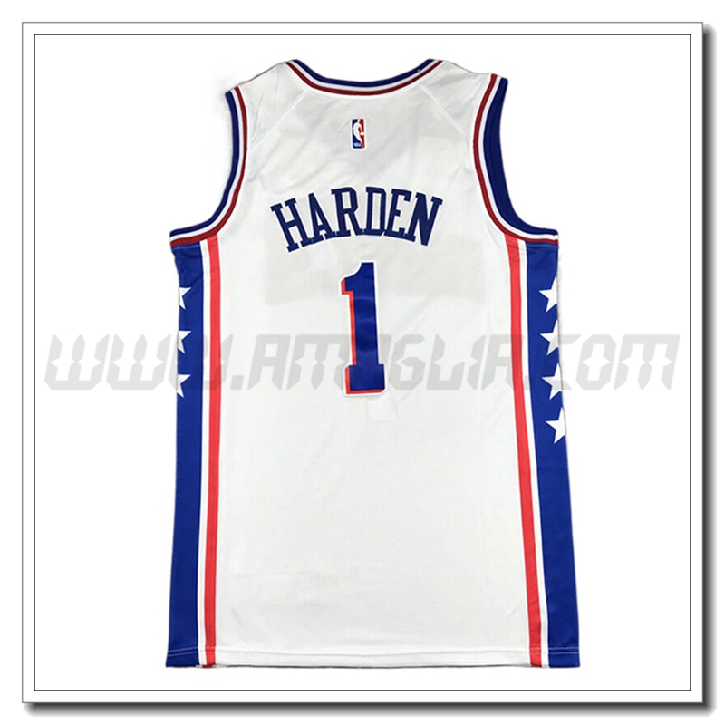 Copie Perfette Maglia Philadelphia 76ers (HARDEN #1) 2022/23 Bianco. siti affidabili tuta allenamento calcio squadre a poco prezzo