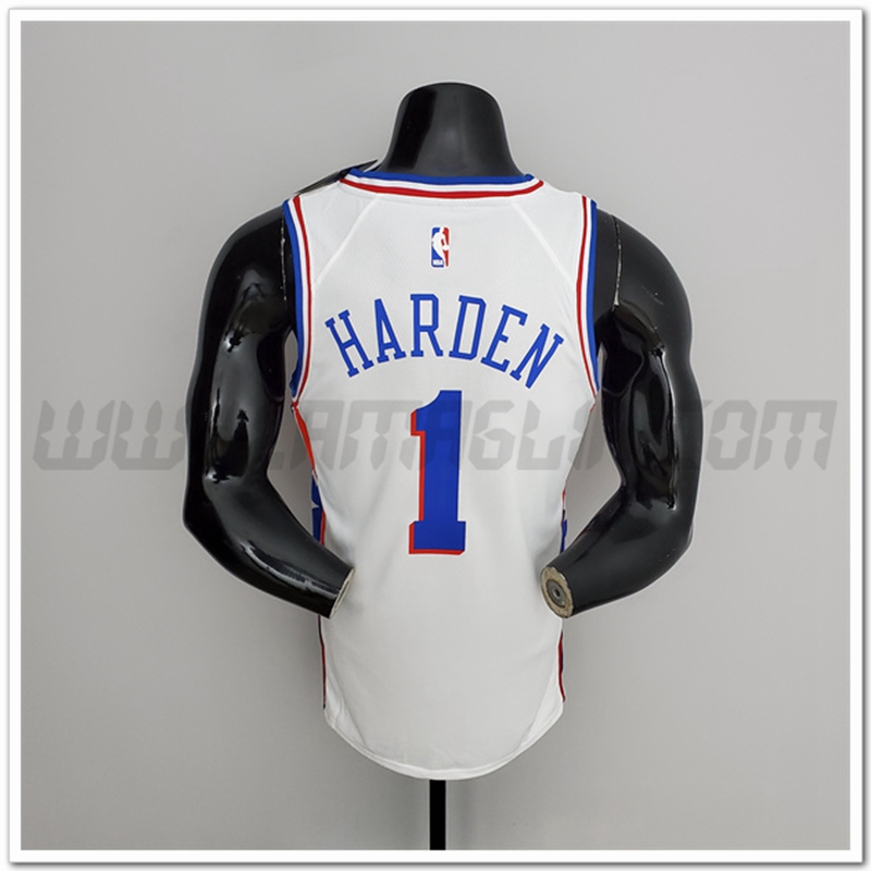 Copie Perfette Maglie Philadelphia 76ers (Harden #1) Bianco V-collerette. siti affidabili tute di Basket a basso prezzo
