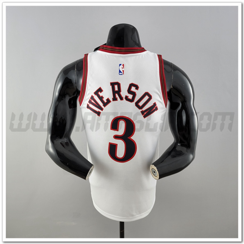 Copie Perfette Maglie Philadelphia 76ers (Iverson #3) Retro Big Meteor Bianco. siti affidabili tute di Basket a basso prezzo