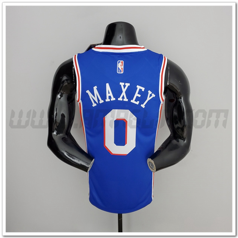 Copie Perfette Maglie Philadelphia 76ers (Maxey #0) Blu 75°anniversario. siti affidabili tute di Basket a basso prezzo