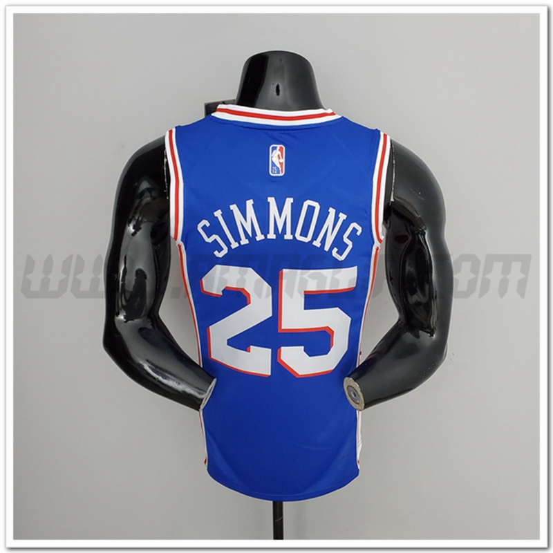 Copie Perfette Maglie Philadelphia 76ers (Simmons #25) Blu 75°anniversario. siti affidabili tute di Basket a basso prezzo