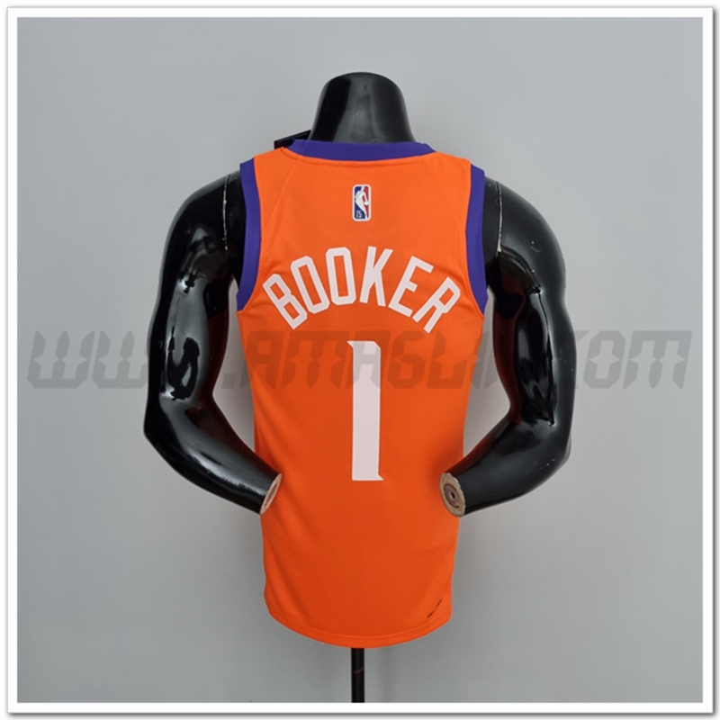 Copie Perfette Maglie Phoenix Suns (Booker #1) Orange 75°anniversario Jordan Theme. siti affidabili tute Basket a poco prezzo