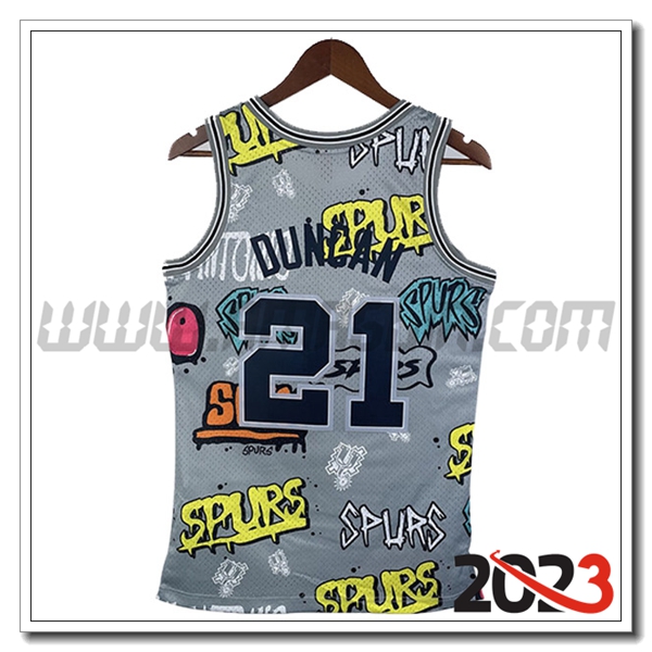 Nuovo Maglia San Antonio Spurs (DUNCAN #21) 2023/2024 Grigio. sito affidabile per vendere tuta allenamento calcio squadre a poco prezzo