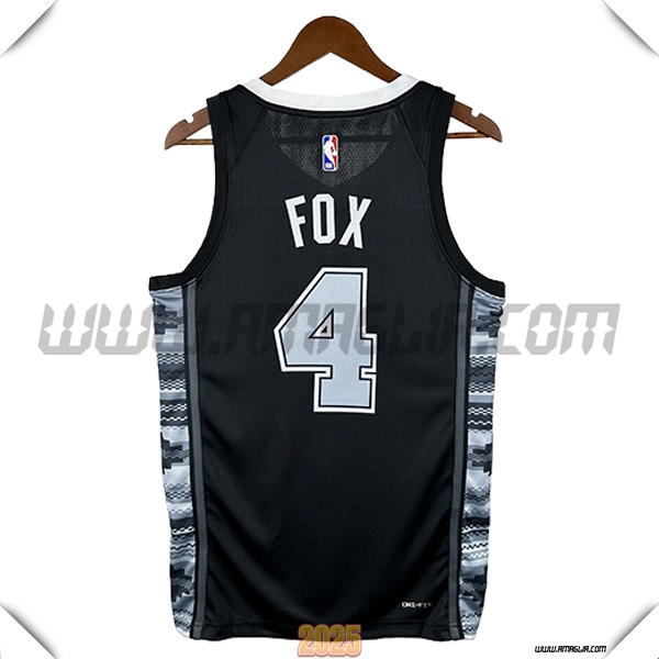 Nuova Maglia San Antonio Spurs (FOX #4) 2025/2026 Nero/Grigio. sito affidabile per l'acquisto tute squadre calcio a poco prezzo