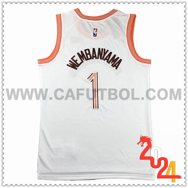 Nuova Maglia San Antonio Spurs (WEMBANYAMA #1) 2024/2025 Bianco/Arancia. sito affidabile per l'acquisto tute calcio a poco prezzo