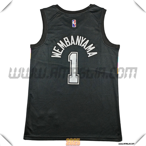Nuova Maglia San Antonio Spurs (WEMBANYAMA #1) 2025/2026 Nero. sito affidabile per l'acquisto tute da calcio a poco prezzo