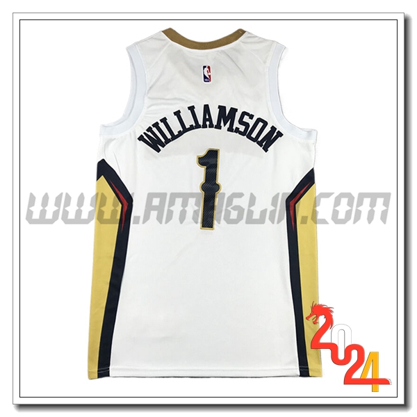 Nuovo Maglia San New Orleans Pelicans (WILLIAMSON #1) 2024/2025 Bianco/Giallo. sito affidabile per vendere tuta allenamento calcio squadre a poco prezzo
