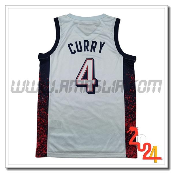 Nuovo Maglia USA (CURRY #4) 2024/2025 Bianco/Nero/Rosso. sito affidabile per l'acquisto tute squadre calcio a poco prezzo