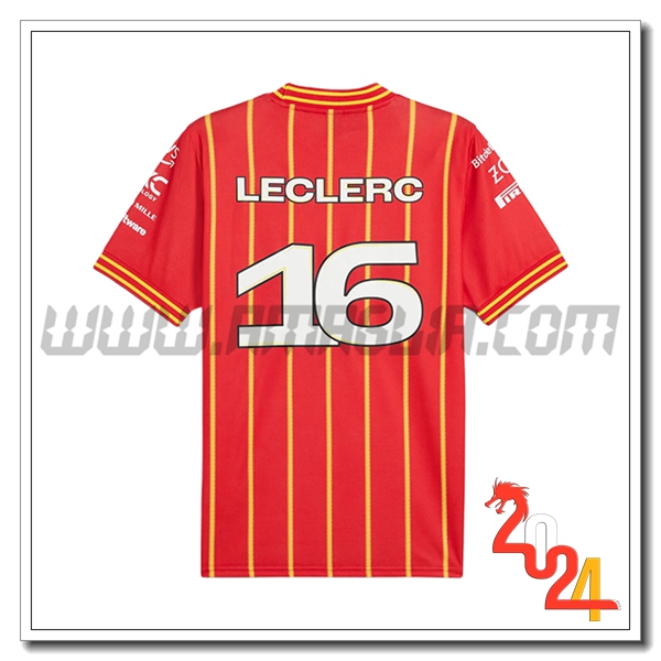 Nuova Maglietta F1 Scuderia Ferrari Team (LECLERC #16) Rosso/Giallo 2024. sito affidabile per vendere tute calcio poco prezzo