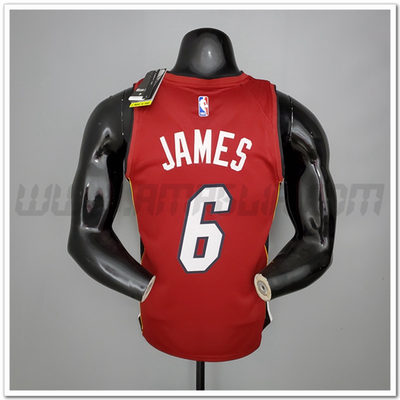 • Nuovo Maglia Miami Heat (James #6) Vin Rosso