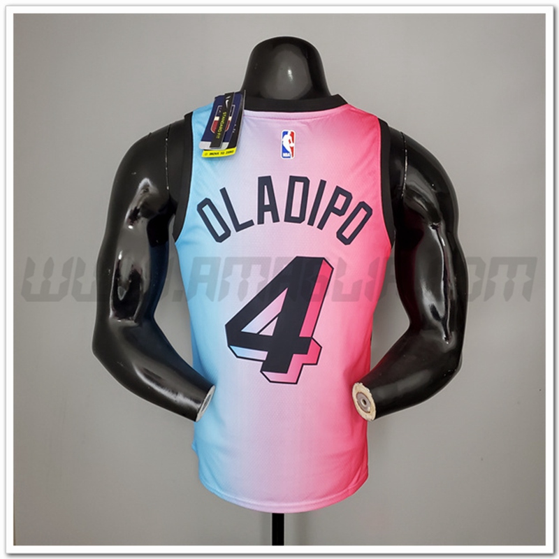 Nuovo Maglia Miami Heat (Oladipo #4) Citta Rose/Blu Colore Sfumato