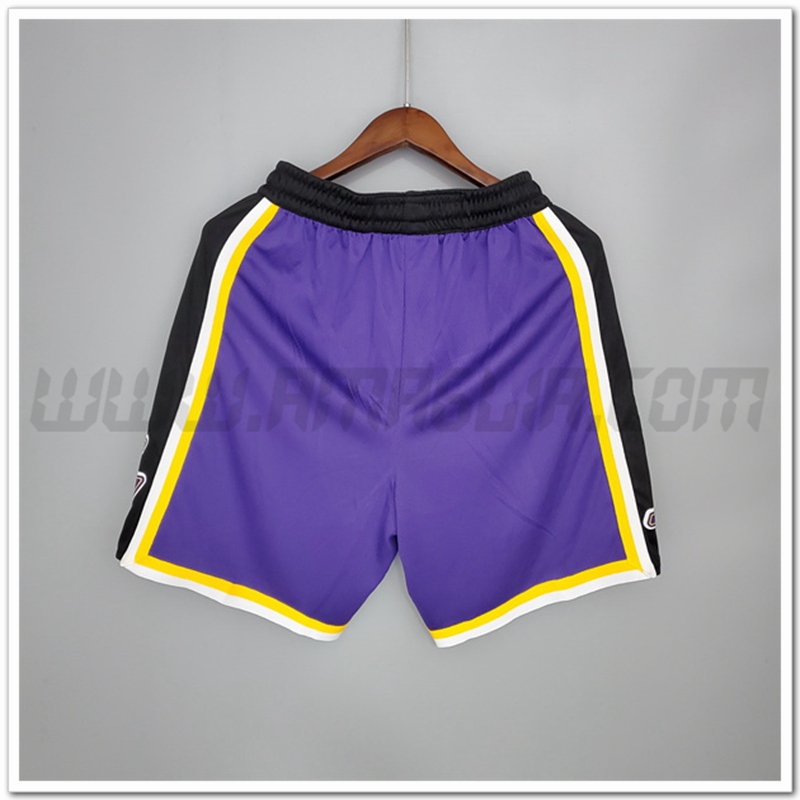 Copie Perfette Pantaloncini NBA Los Angeles Lakers Porpora/Nero Side. siti affidabili tuta allenamento Basket squadre a poco prezzo