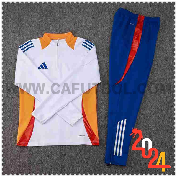 Nuovo Tuta Allenamento Adidas Bianco/Arancia/Blu 2024/2025. sito affidabile per vendere tuta allenamento calcio squadre a poco prezzo
