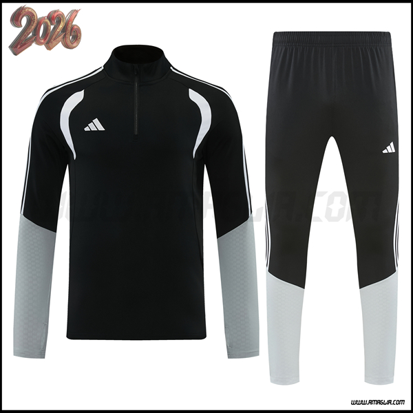 Nuovo Tuta Allenamento Adidas Nero/Grigio/Bianco 2026 2027. sito affidabile per vendere tuta allenamento calcio squadre a poco prezzo