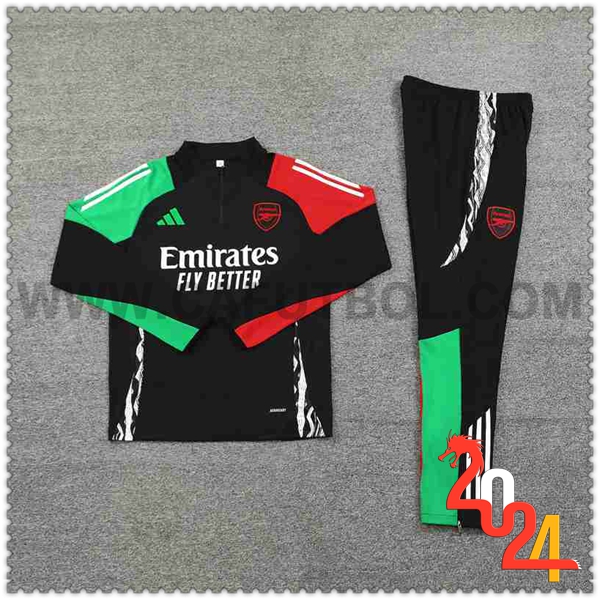 Nuovo Tuta Allenamento Arsenal Nero/Verde/Rosso 2024/2025 -03. sito affidabile per l'acquisto tute squadre calcio a poco prezzo