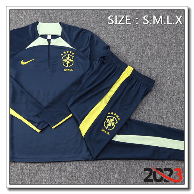 Nuovo Tuta Allenamento Brasile Blu Marino 2023/2024. sito web affidabile per ordinare tute calcio a poco prezzo