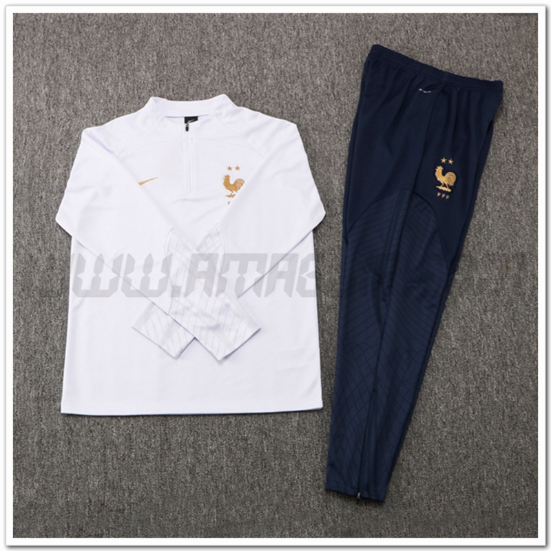 Copie Perfette Tuta Allenamento Francia Bianco 2022/2023. siti affidabili tute calcio poco prezzo