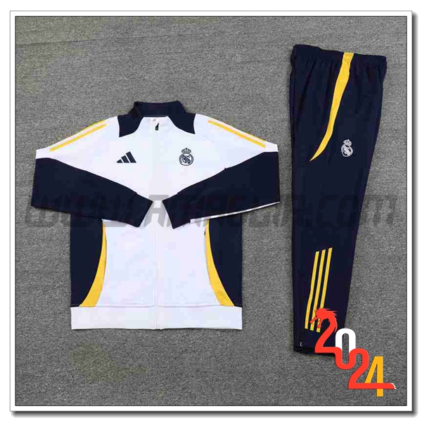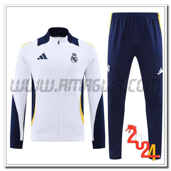 Tuta Allenamento Giacca Calcio Real Madrid Bianco/Blu/Giallo 2024 2025