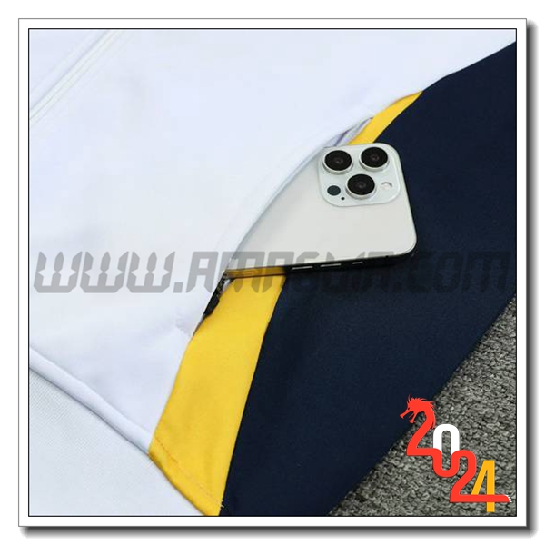 Nuovo Tuta Allenamento Giacca Calcio Real Madrid Bianco/Blu/Giallo 2024/2025. sito affidabile per vendere tuta allenamento calcio squadre a poco prezzo