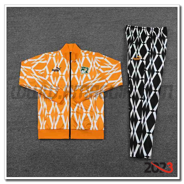 Nuovo Tuta Allenamento Giacca Ivory Coast Arancia/Bianco/Nero 2023/2024. sito affidabile per l'acquisto tute squadre calcio a poco prezzo