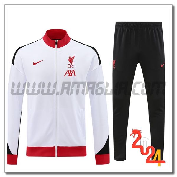 Nuovo Tuta Allenamento Giacca FC Liverpool Bianco/Rosso 2024/2025. sito affidabile per l'acquisto tute squadre calcio a poco prezzo