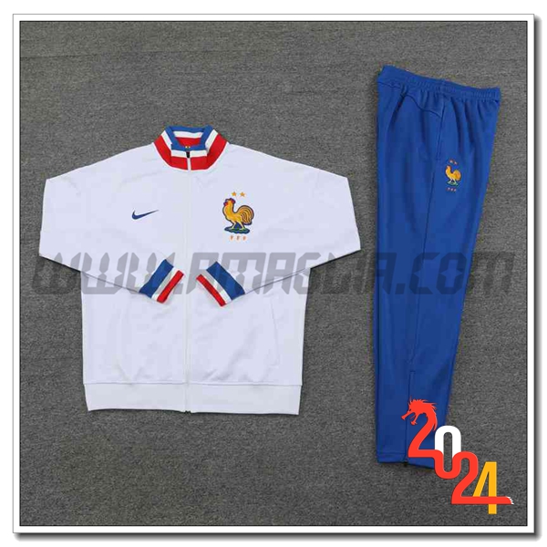 Nuovo Tuta Allenamento Giacca Francia Bianco 2024/2025. sito affidabile per vendere tuta allenamento calcio squadre a poco prezzo