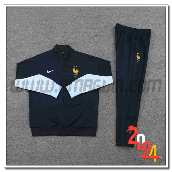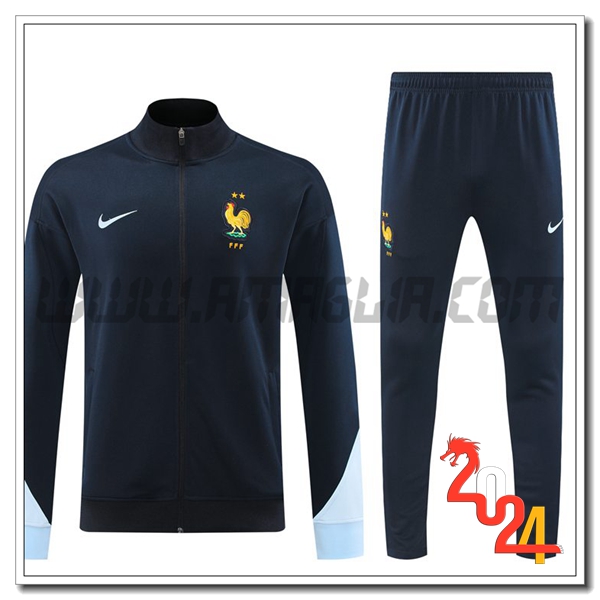 Nuovo Tuta Allenamento Giacca Francia Nero/Blu 2024/2025. sito affidabile per vendere tuta allenamento calcio squadre a poco prezzo