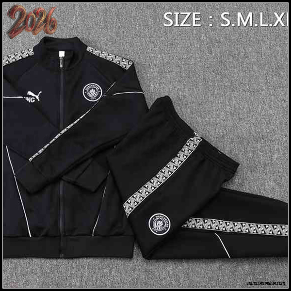 Nuovo Tuta Allenamento Giacca Manchester City Nero/Bianco 2025/2026. sito affidabile per l'acquisto tute squadre calcio a poco prezzo