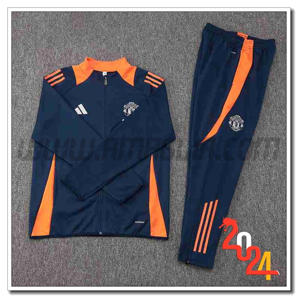 Nuovo Tuta Allenamento Giacca Manchester United Blu/Arancia 2024/2025. sito affidabile per vendere tuta allenamento calcio squadre a poco prezzo