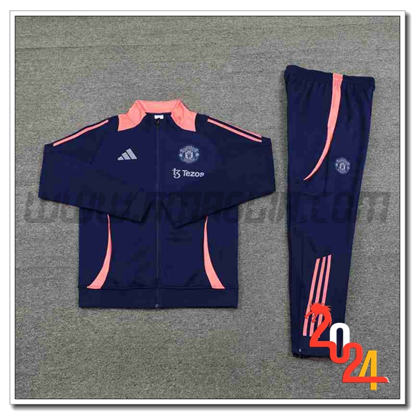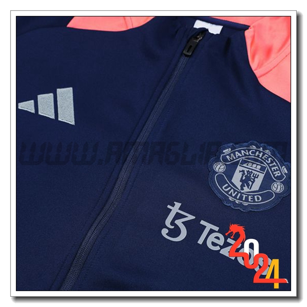 Nuova Tuta Allenamento Giacca Manchester United Blu/Rosa 2024/2025. sito affidabile per l'acquisto tute squadre calcio a poco prezzo
