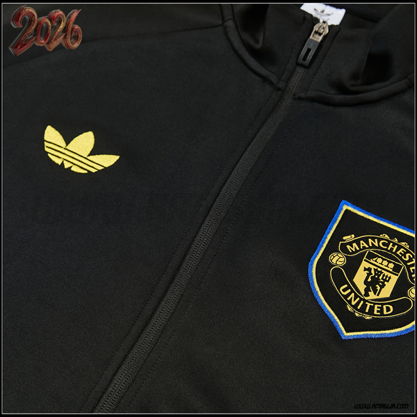 Nuovo Tuta Allenamento Giacca Manchester United Nero/Giallo/Blu 2026 2027. sito affidabile per l'acquisto tute calcio a poco prezzo